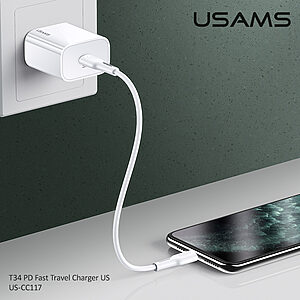 Original price was: 29.90€.27.96€Η τρέχουσα τιμή είναι: 27.96€.Φορτιστής Τοίχου 30W VEGER VLS302U – USB-C PD 30W + USB-A QC 3.0 18W Λευκός