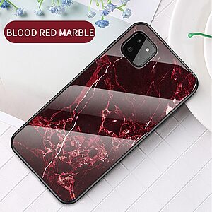 Θήκη Samsung Galaxy A22 5G OEM σχέδιο Marble με Πλάτη Tempered Glass TPU κόκκινο