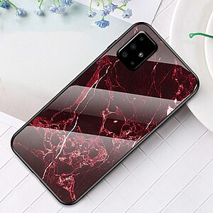 Θήκη Samsung Galaxy A51 OEM σχέδιο Marble με Πλάτη Tempered Glass TPU κόκκινο
