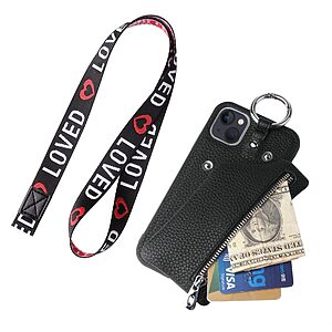 Original price was: 14.50€.7.71€Η τρέχουσα τιμή είναι: 7.71€.Θήκη iPhone 14 Plus Mad Mask πλάτη δερματίνης με κορδόνι και πορτοφόλι με φερμουαρ από αντικραδασμικό TPU μαύρο