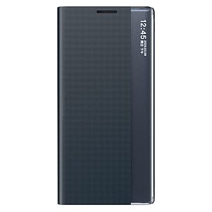 Original price was: 11.40€.9.90€Η τρέχουσα τιμή είναι: 9.90€.Θήκη Samsung Galaxy S21 FE OEM Half Mirror View Stand Cover με μαγνητικό κούμπωμα από συνθετικό δέρμα μαύρο