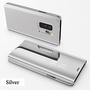Original price was: 14.80€.12.90€Η τρέχουσα τιμή είναι: 12.90€.Θήκη SAMSUNG Galaxy S9 Plus OEM Clear View & Mirror Surface με βάση στήριξης Flip Window δερματίνη ασημί
