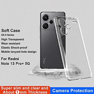 Original price was: 13.90€.11.25€Η τρέχουσα τιμή είναι: 11.25€.Θήκη Xiaomi Redmi Note 13 Pro+ 5G IMAK UX-5 Series Soft TPU πλάτη διάφανη