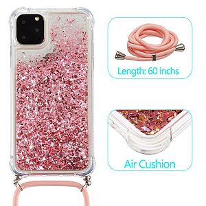 Θήκη iPhone 12 Pro Max OEM πλάτη με κορδόνι και διακριτική σκόνη γκλίτερ άμμου από αντικραδασμικό TPU φούξια
