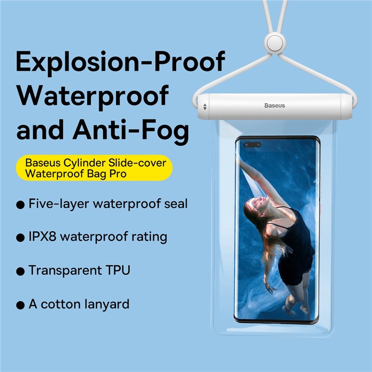 Αδιάβροχη Θήκη Κινητού Baseus Cylinder Slide-cover Pro για Συσκευές έως 7.2” – Λευκό