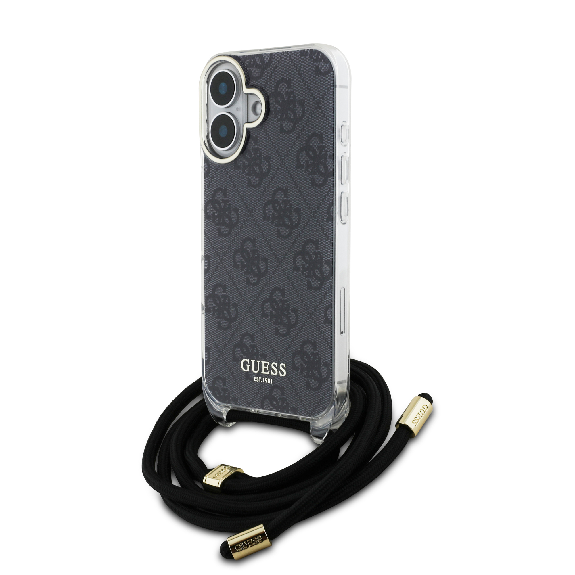 Guess “4G Logo Collection” Crossbody Hard Case Script Metal Logo Θήκη προστασίας από σιλικόνη με λουράκι – iPhone 16 (Μαύρο – GUHCP16SHC4SEK)