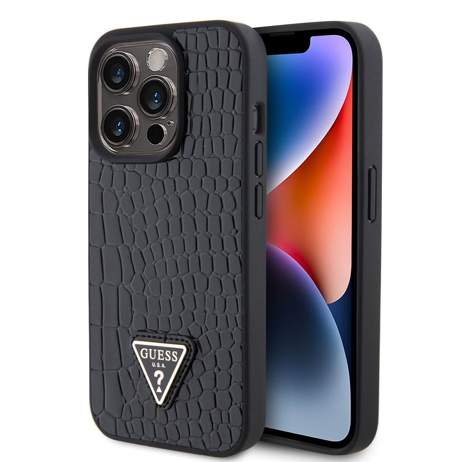 Guess “Croco Triangle Logo Collection” Θήκη προστασίας από δερματίνη με μεταλλικό λογότυπο – iPhone 15 Pro (Μαύρο – GUHCP15LPCRTHCK)