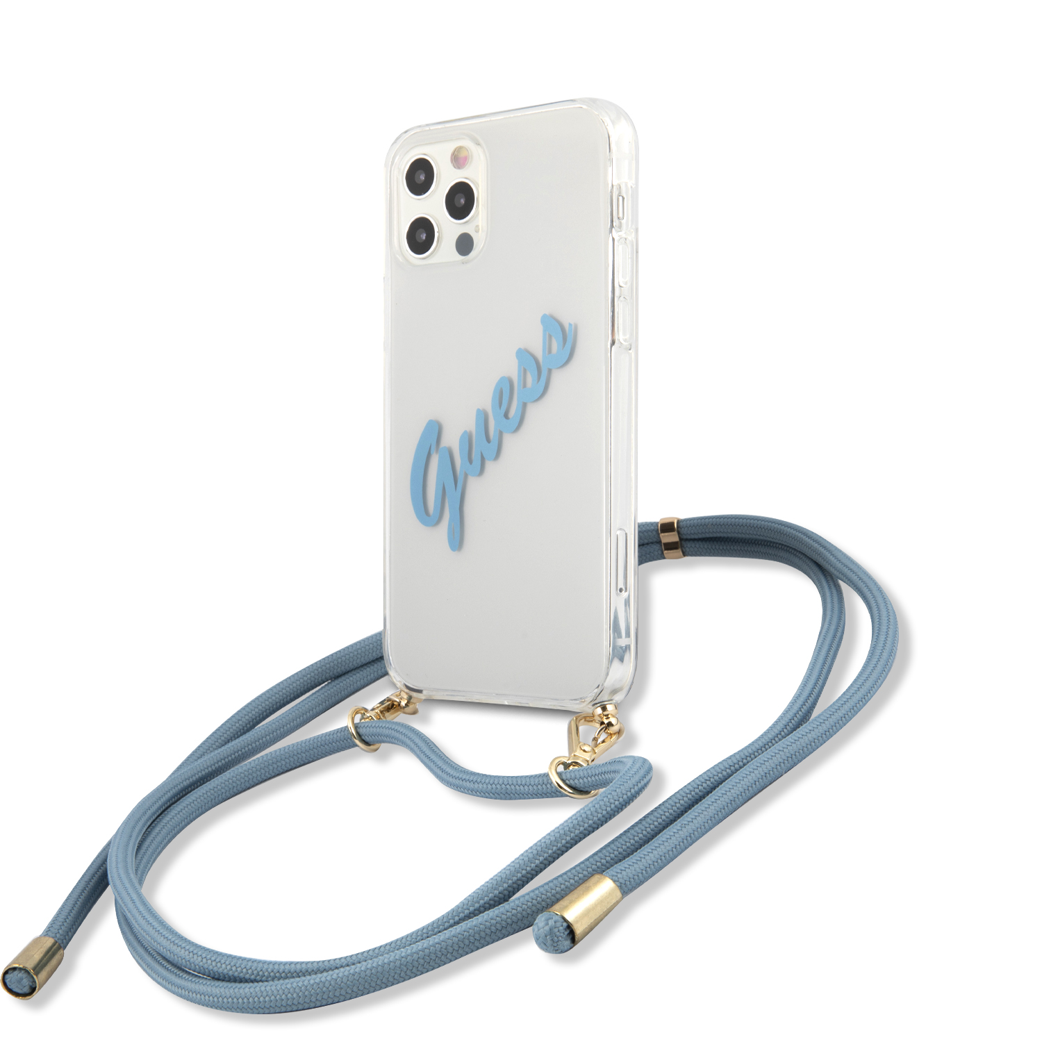Guess “Vintage Script Pink Logo Collection” Σκληρή Θήκη προστασίας από σιλικόνη με κορδονάκι χειρός σε γαλάζιο χρώμα – Apple iPhone 12 Pro Max (Διάφανη)