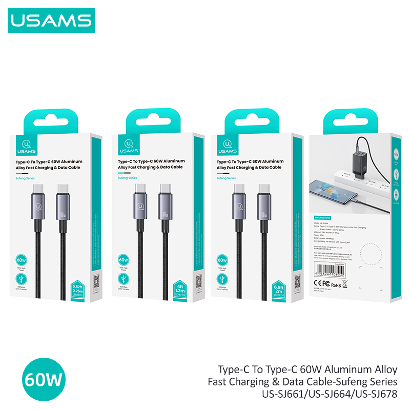 Το καλώδιο SJ678 της USAMS προσφέρει 60W υψηλή ισχύ, εξασφαλίζοντας γρήγορη και ασφαλή φόρτιση για συσκευές με θύρα Type-C. Υποστηρίζει λειτουργία 2 σε 1, καθώς προσφέρει ταυτόχρονη φόρτιση και μεταφορά δεδομένων. Ο βύσμα από κράμα αλουμινίου και το ισχυρό πλεγμένο καλώδιο από νάιλον παρέχουν αντοχή και αξιοπιστία. Επιπλέον, διαθέτει βέλκρο για εύκολη αποθήκευση και αποφυγή μπλεξίματος.