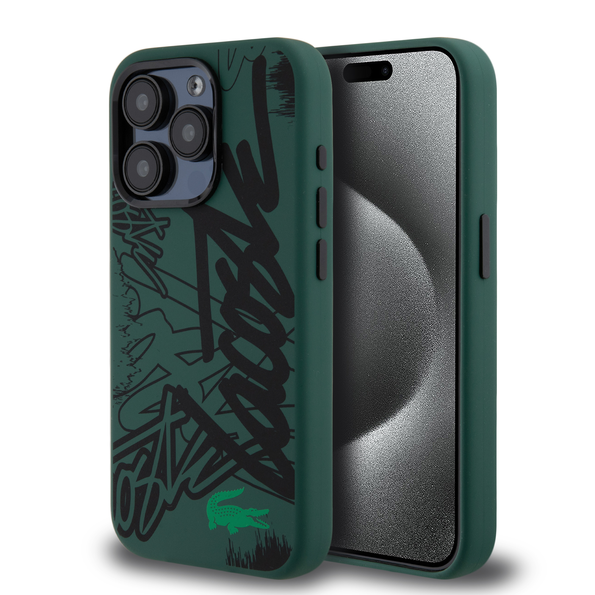 Lacoste Graffiti Hard Case Θήκη προστασίας από Liquid σιλικόνη για iPhone 15 Pro (Πράσινο/Μαύρο)
