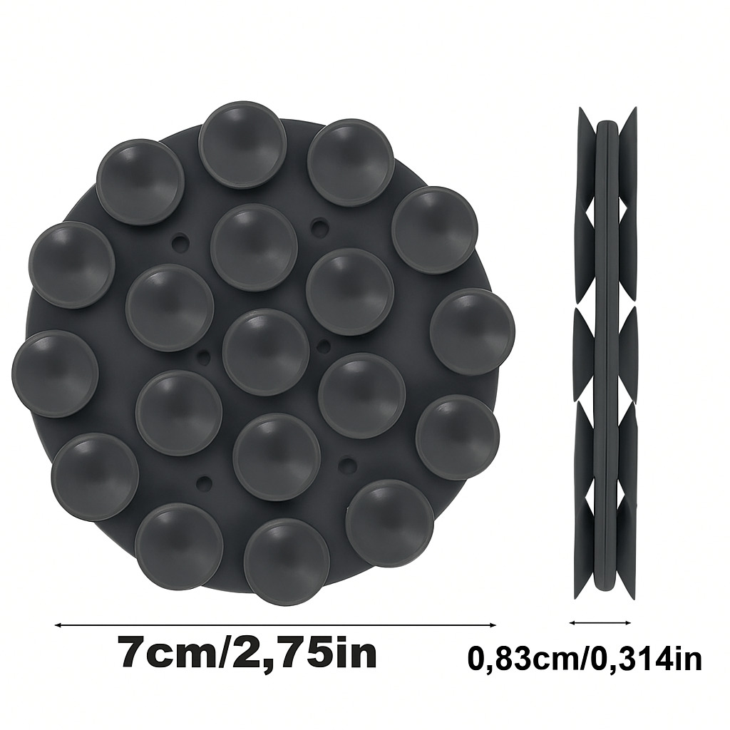 Στρογγυλό διπλής όψης με 19 βεντουζάκια σιλικόνης που προσφέρει ισχυρή πρόσφυξη σε λείες επιφάνειες – Ιδανικό για στήριξη κινητού χωρίς ολίσθηση