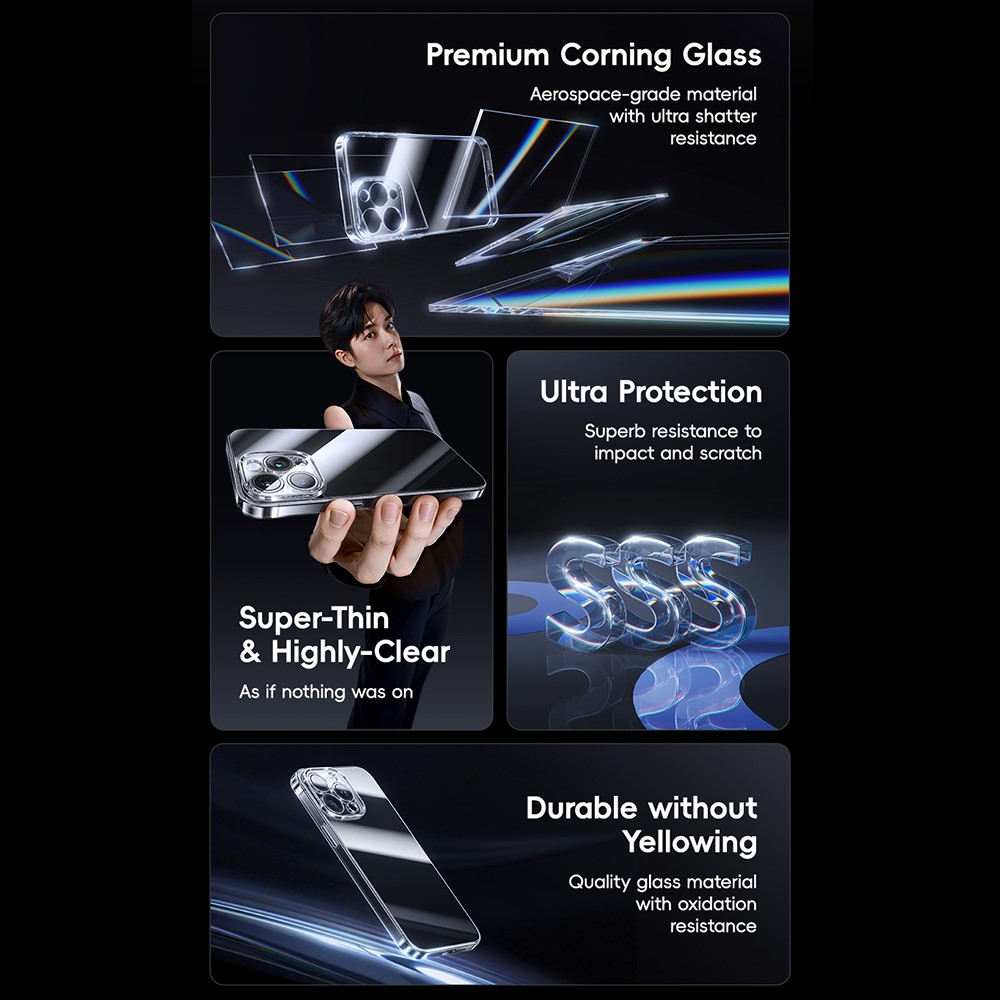 Αναβαθμίστε την προστασία του iPhone 15 Pro Max με την Baseus Corning Series, μια θήκη που συνδυάζει την υψηλή ποιότητα του Corning glass με την ευελιξία του TPU.