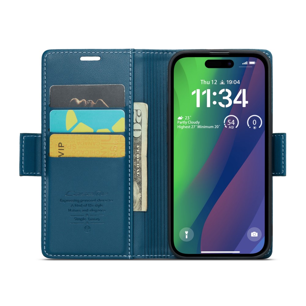 Θήκη iPhone 16 CASEME 023 Series Πορτοφόλι με βάση στήριξης, υποδοχές καρτών και μαγνητικό κούμπωμα από συνθετικό δέρμα και TPU μπλε