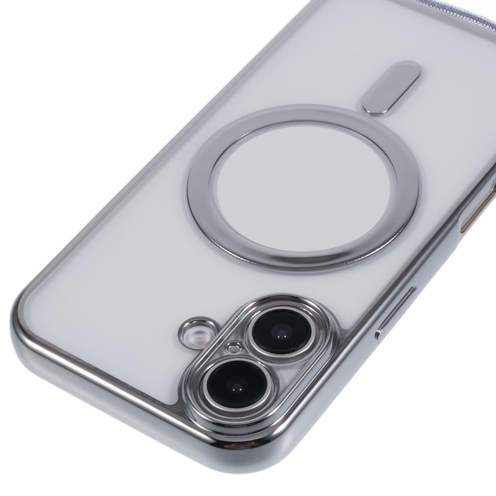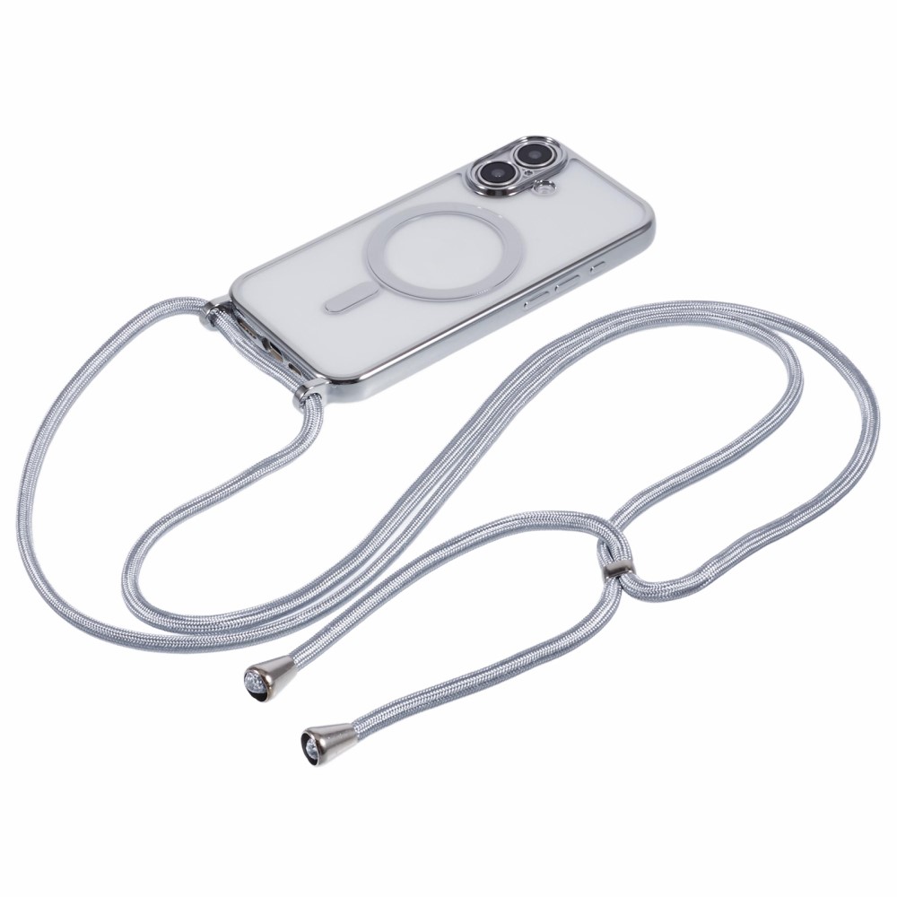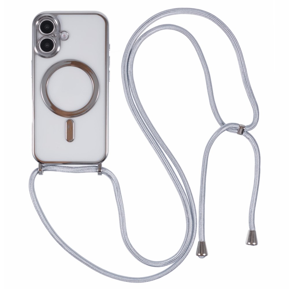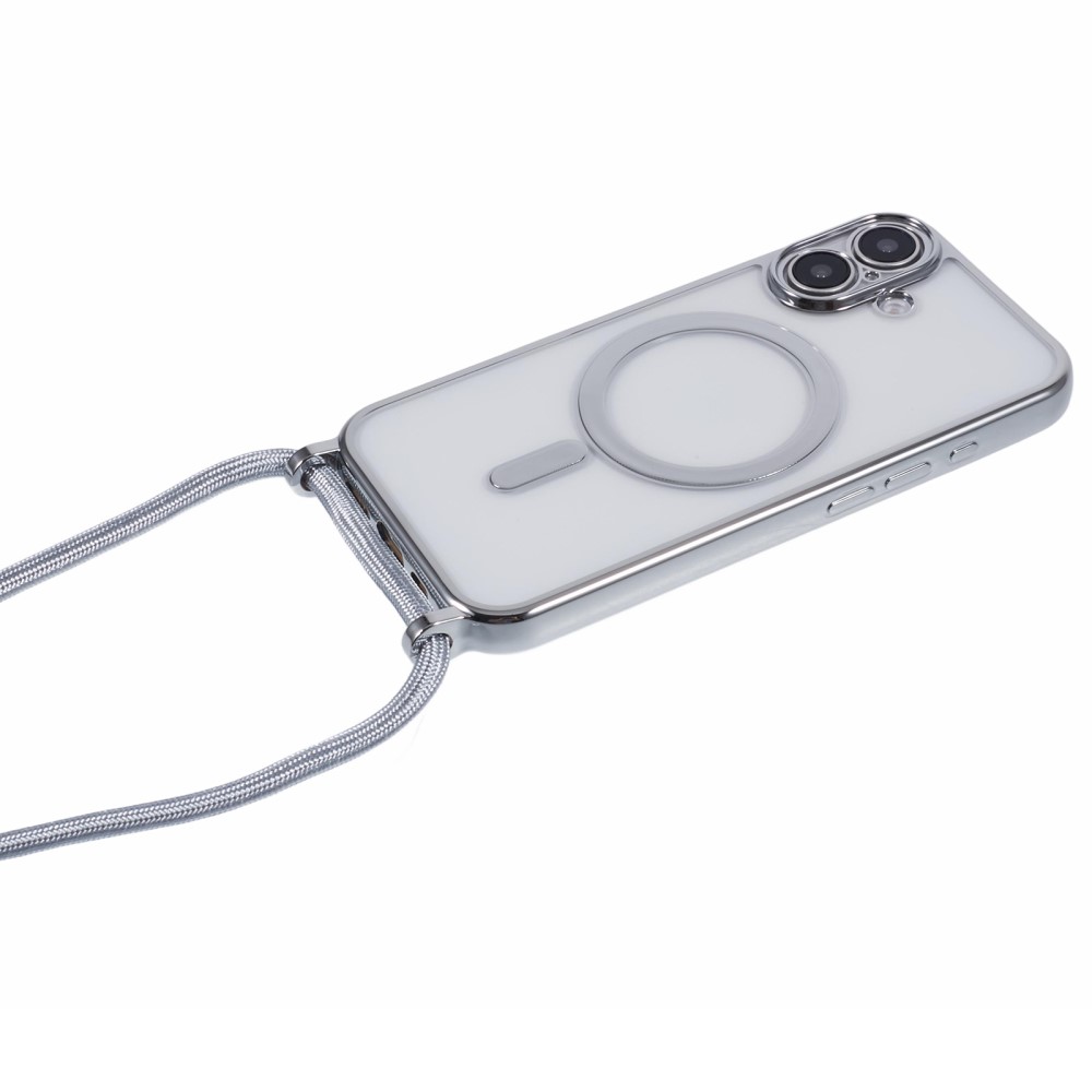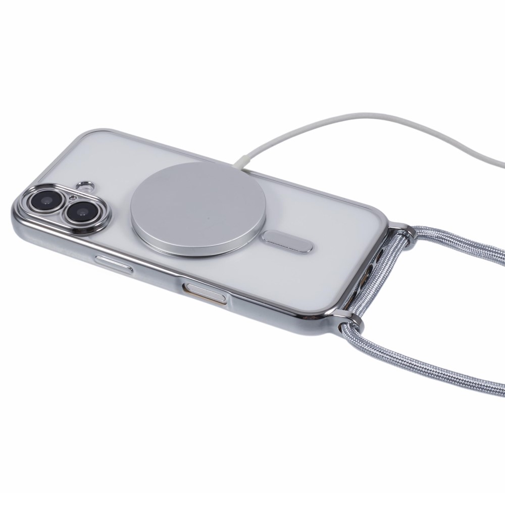 Θήκη iPhone 16 Mad Mask Διάφανο κάλυμμα με συμβατότητα MagSafe και μακρύ λουράκι, ανθεκτική κατασκευή TPU+PC για προστασία από γρατζουνιές ασημί