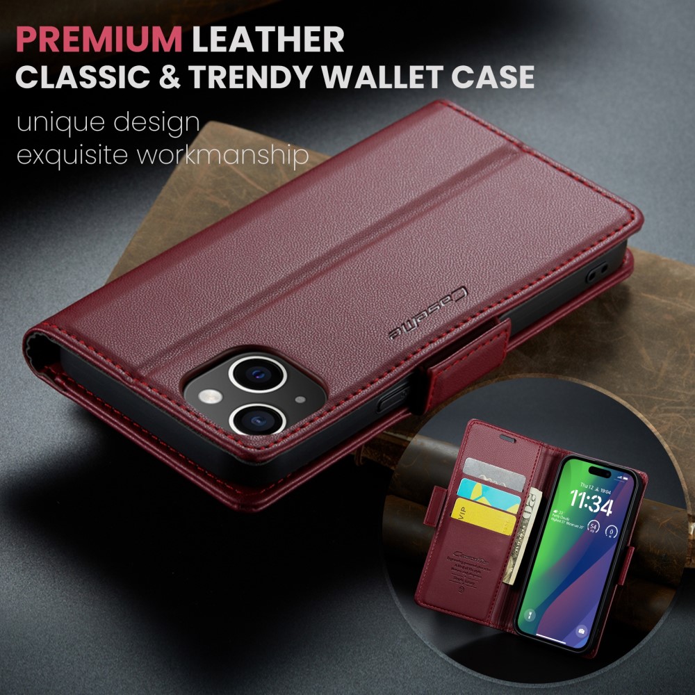 Θήκη iPhone 16 Plus CASEME 023 Series Πορτοφόλι με βάση στήριξης, υποδοχές καρτών και μαγνητικό κούμπωμα από συνθετικό δέρμα και TPU κόκκινο