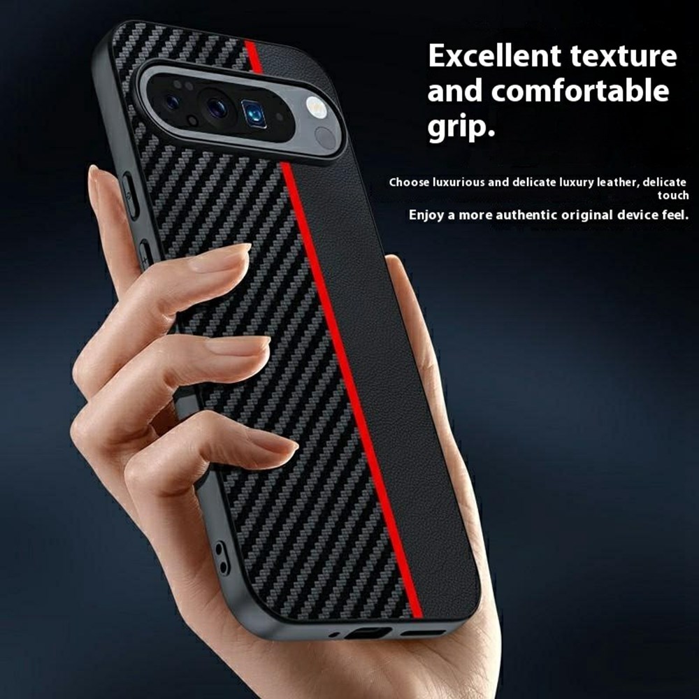 Σκληρή Πλάτη από Συνθετικό Δέρμα (PU) + PC για Google Pixel 10 Pro XL 5G σε Μαύρο/Κόκκινο με υφή Carbon Fiber για άριστη προστασία.