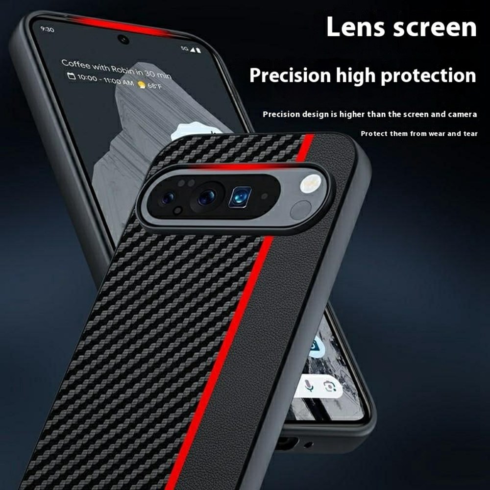 Σκληρή Πλάτη από Συνθετικό Δέρμα (PU) + PC για Google Pixel 10 Pro XL 5G σε Μαύρο / Μπλε με υφή Carbon Fiber για άριστη προστασία.