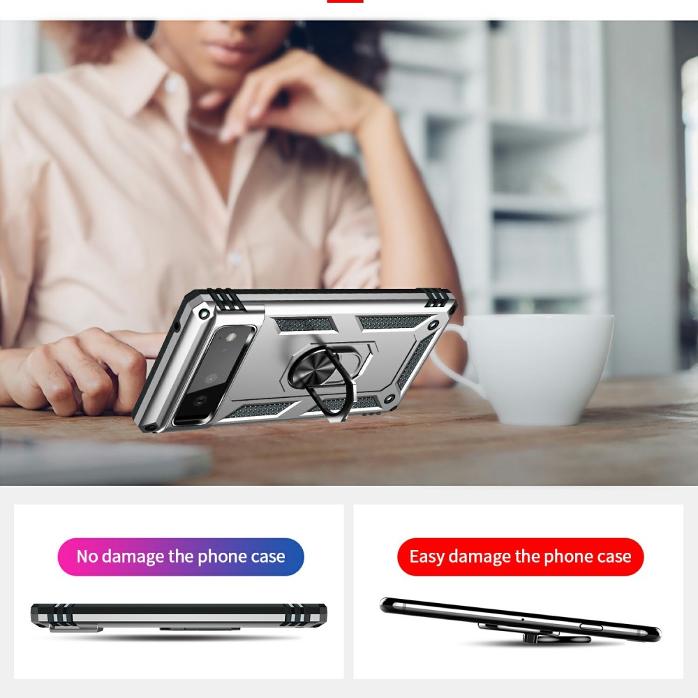 Θήκη Google Pixel 6 5G OEM Πλάτη Armor V12 με Μαγνητικό δαχτυλίδι και Βάση στήριξης TPU ασημί