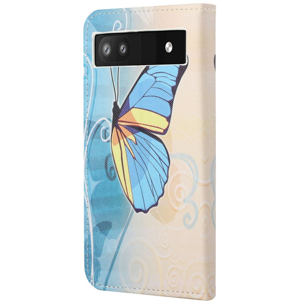 Θήκη Google Pixel 6A 5G OEM Blue Butterfly & Flowers με βάση στήριξης, υποδοχές καρτών και μαγνητικό κούμπωμα Flip Wallet από συνθετικό δέρμα και TPU