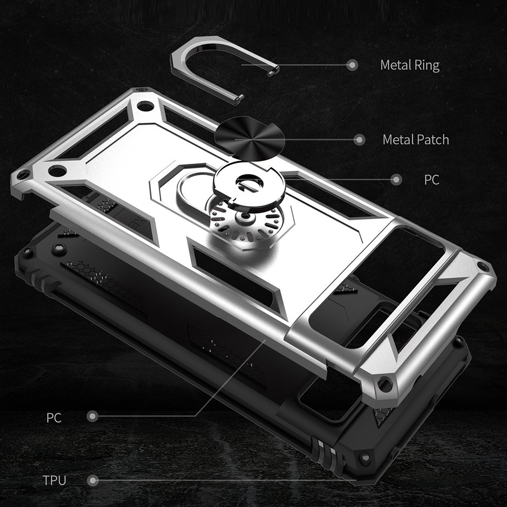 Θήκη Google Pixel 7 Pro 5G OEM Πλάτη Armor V12 με Μαγνητικό δαχτυλίδι και Βάση στήριξης TPU ασημί