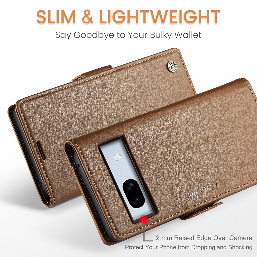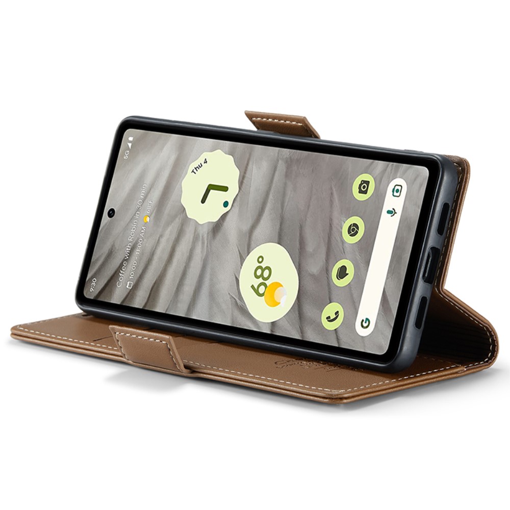 Θήκη Google Pixel 7A CaseMe 023 Series Πορτοφόλι με βάση στήριξης, υποδοχές καρτών και μαγνητικό κούμπωμα από συνθετικό δέρμα και TPU καφέ