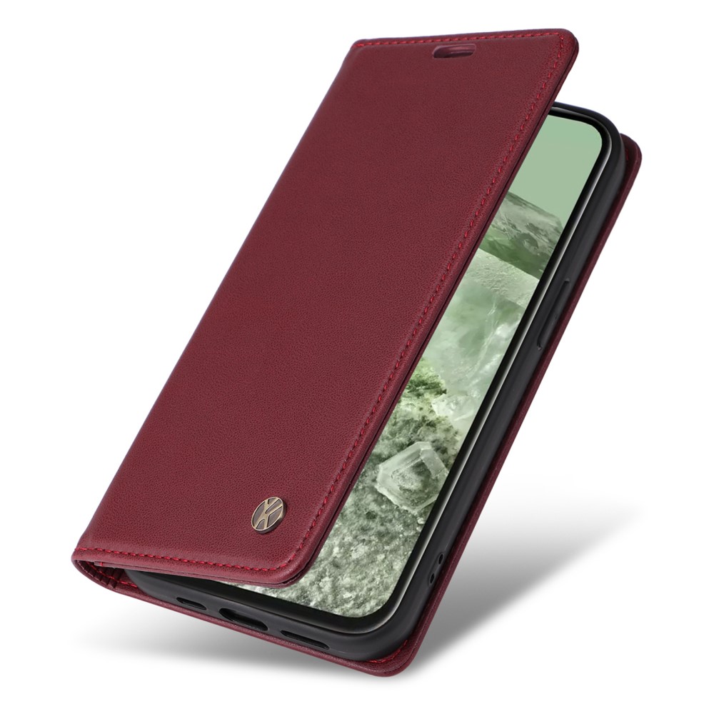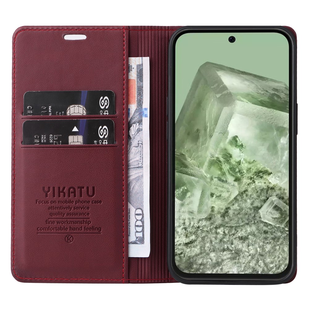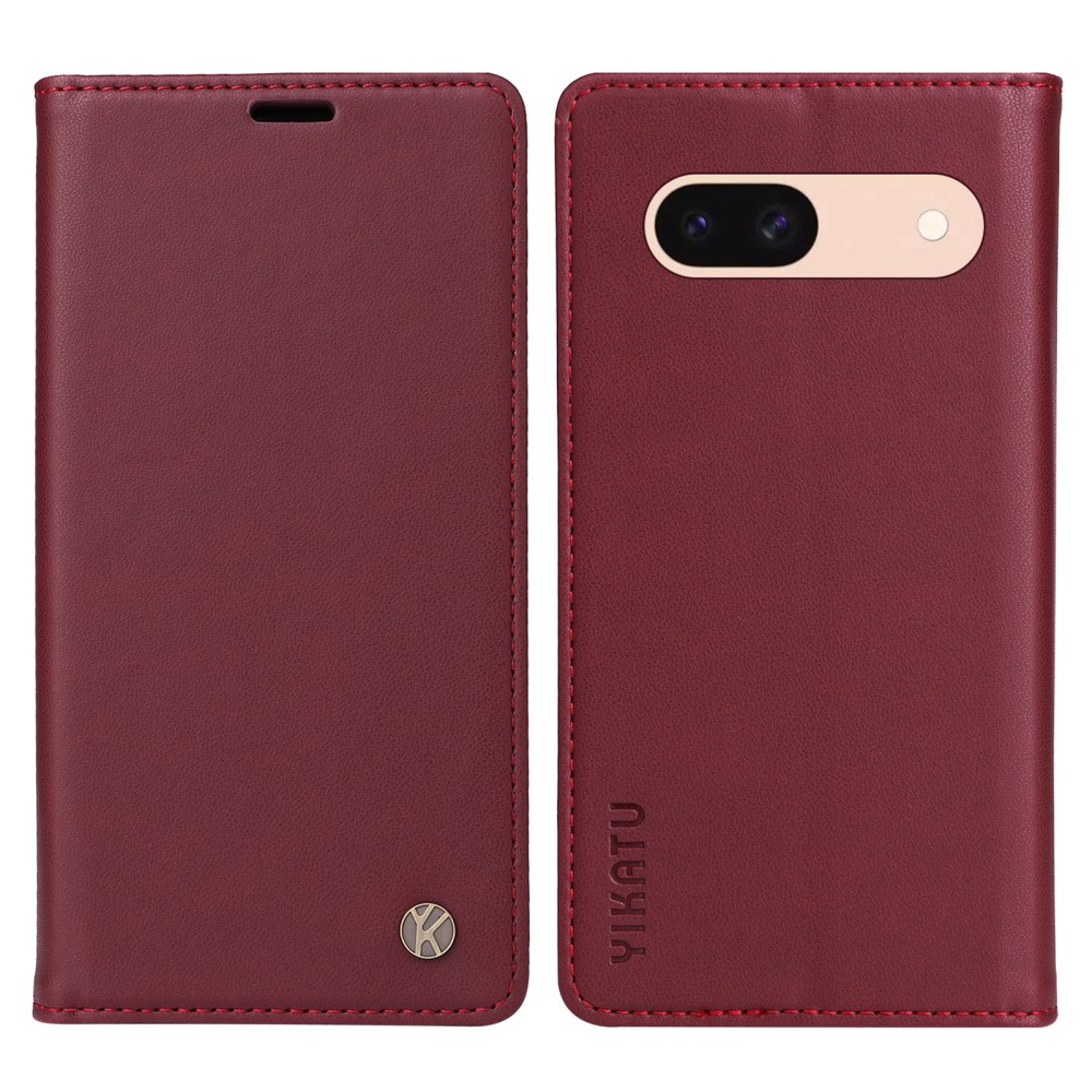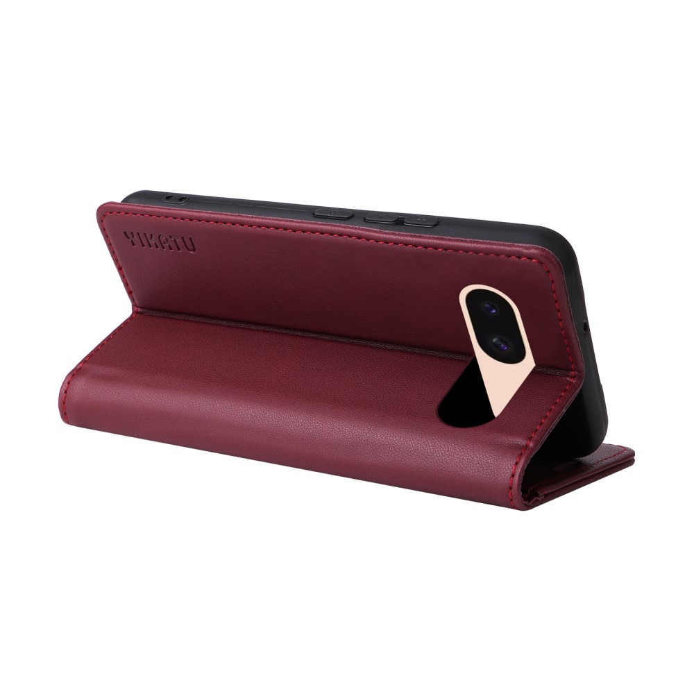 Θήκη Google Pixel 8a 5G YIKATU Folio Series με βάση στήριξης, υποδοχή καρτών και μαγνητικό κούμπωμα Flip Wallet από συνθετικό δέρμα και TPU κόκκινο σκούρο