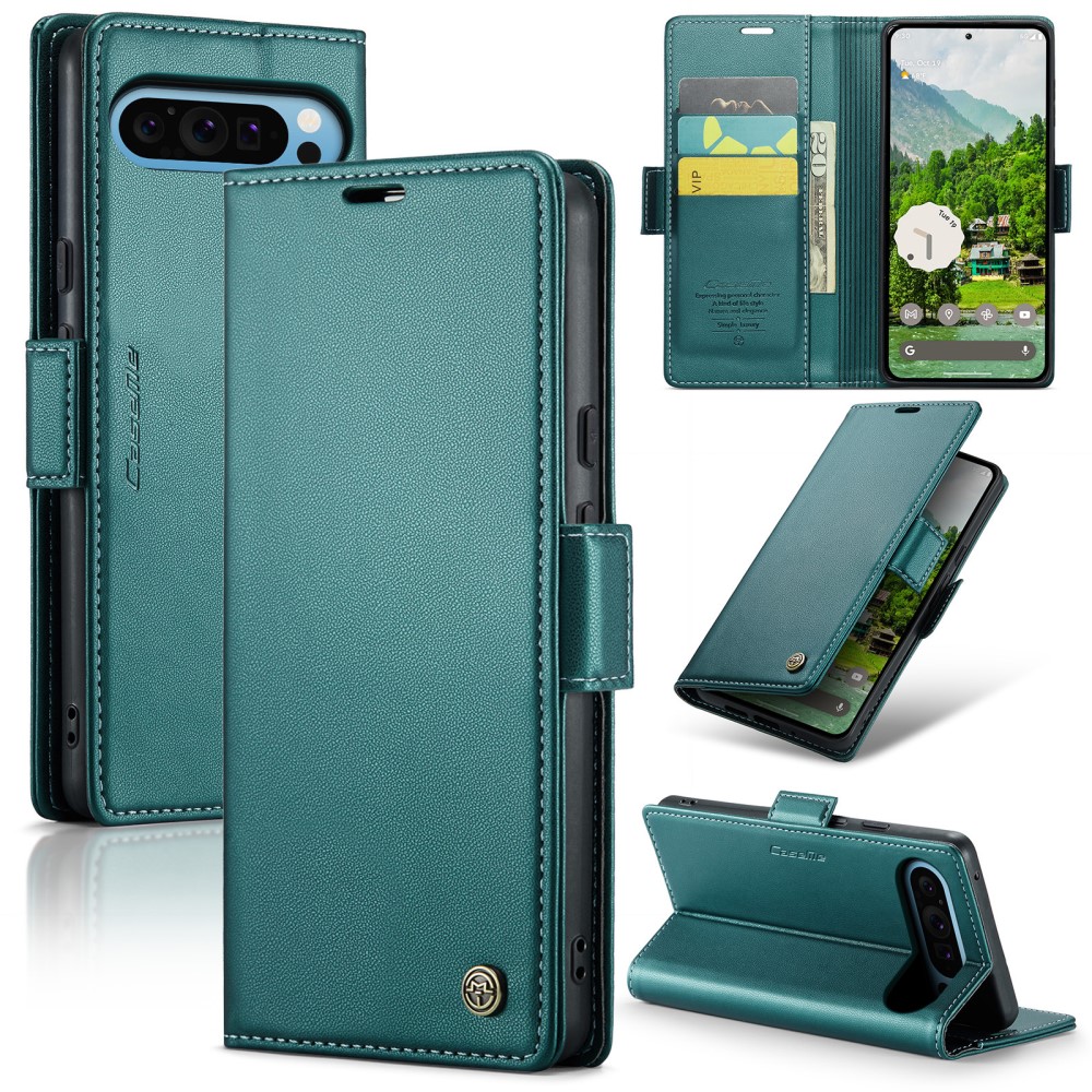 Θήκη Google Pixel 9 Pro XL 5G CASEME 023 Series Πορτοφόλι με βάση στήριξης, υποδοχές καρτών και μαγνητικό κούμπωμα από συνθετικό δέρμα και TPU πράσινο