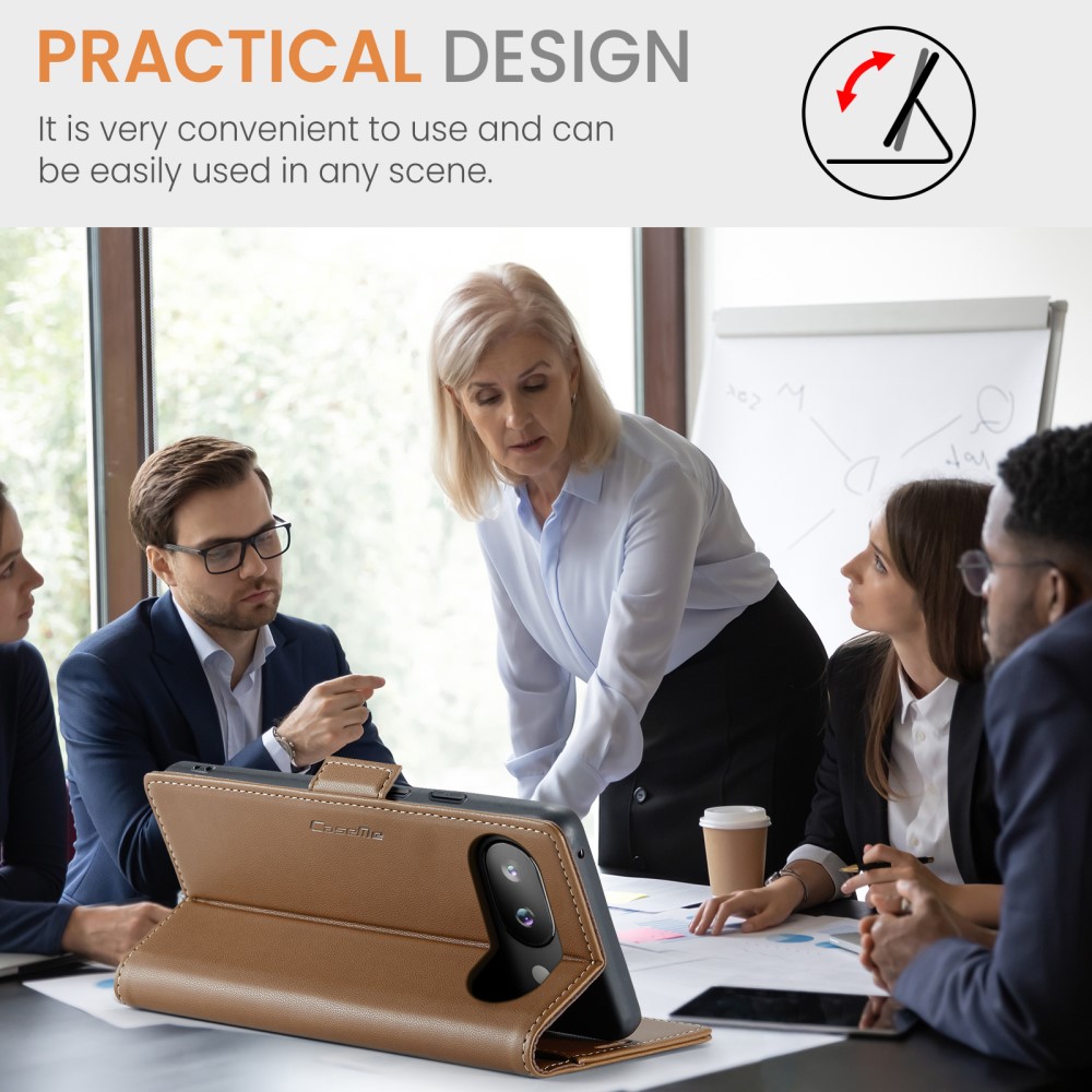 Θήκη Google Pixel 9a 5G CASEME 023 Series Πορτοφόλι με βάση στήριξης, υποδοχές καρτών και μαγνητικό κούμπωμα από συνθετικό δέρμα και TPU καφέ