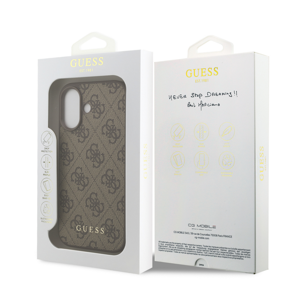 Κλασικό καφέ σχέδιο με το εμβληματικό 4G logo της Guess – Συνδυασμός δερματίνης και TPU για στυλ και προστασία που ξεχωρίζει