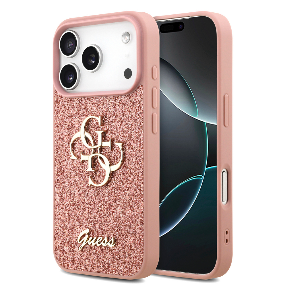 Η επίσημη θήκη Guess σε ροζ απόχρωση με λαμπερή glitter επικάλυψη μετατρέπει το iPhone 17 Pro σε fashion statement. Το χρυσό μεταλλικό λογότυπο 4G στο κέντρο και η χαρακτηριστική υπογραφή Guess στο κάτω μέρος προσθέτουν luxury αίσθηση, ενώ το ροζ TPU πλαίσιο εξασφαλίζει γερή λαβή και άνετη χρήση.