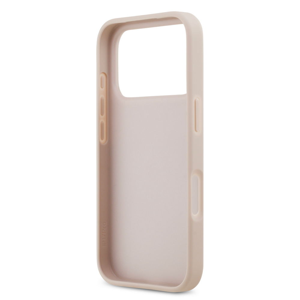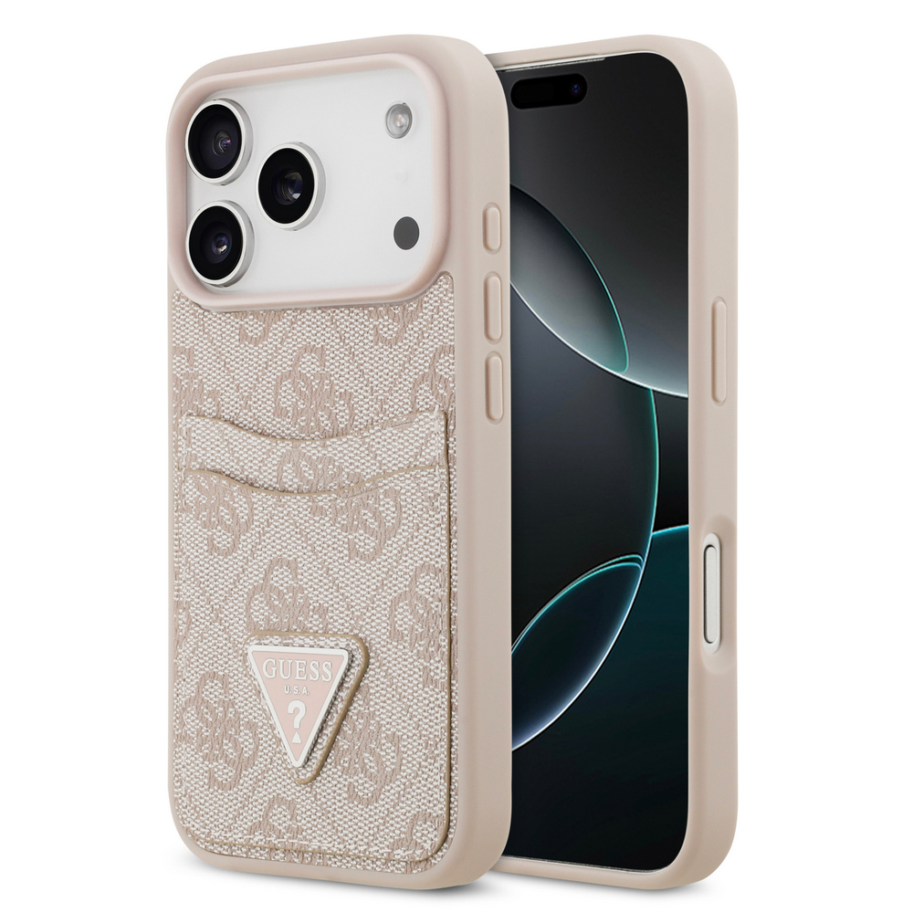 Θήκη Guess με metal triangle logo TPU με 2 υποδοχές για κάρτες επικάλυψη δερματίνης και ανάγλυφη επιφάνεια για iPhone 17 Pro ροζ