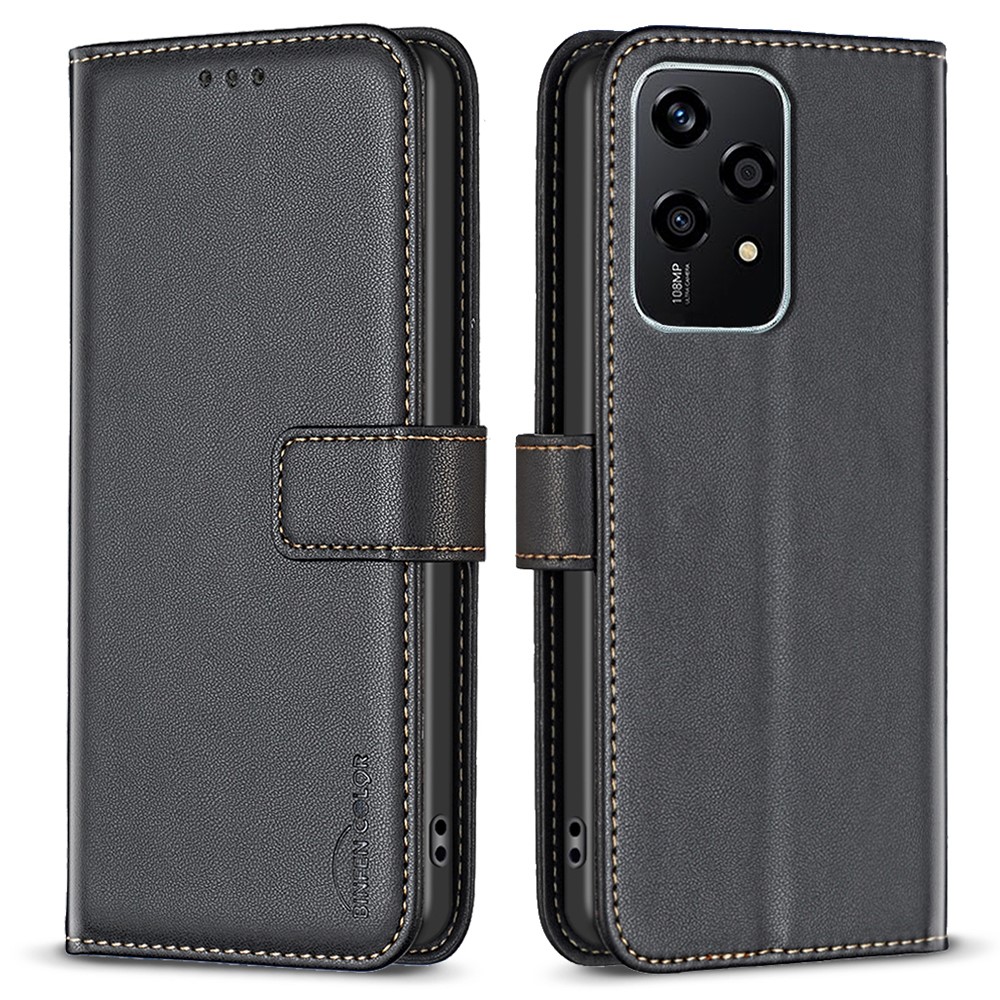 Θήκη Honor 200 Lite 5G BINFEN COLOR Leather Wallet Series 12 με βάση στήριξης, υποδοχές καρτών και μαγνητικό κούμπωμα – μαύρο