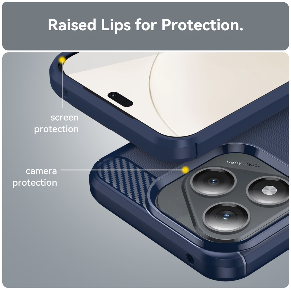 Η συγκεκριμένη θήκη σε μπλε χρώμα και σχέδιο Carbon fiber (ανθρακόνημα) για το Honor 400 Lite 5G στην πίσω όψη προσδίδει το μέγιστο σε ομορφιά / αισθητική της θήκης και σε κάνει να μην θέλεις να την αποχωριστείς. Επιπλέον είναι αντιολισθητική και δεν λερώνει εύκολα.