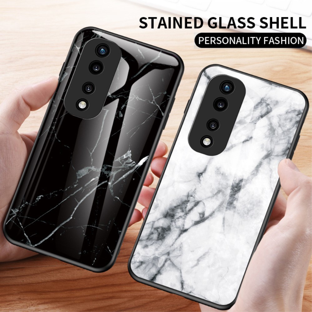 Θήκη Honor 70 Pro 5G OEM σχέδιο Marble με Πλάτη Tempered Glass TPU μαύρο