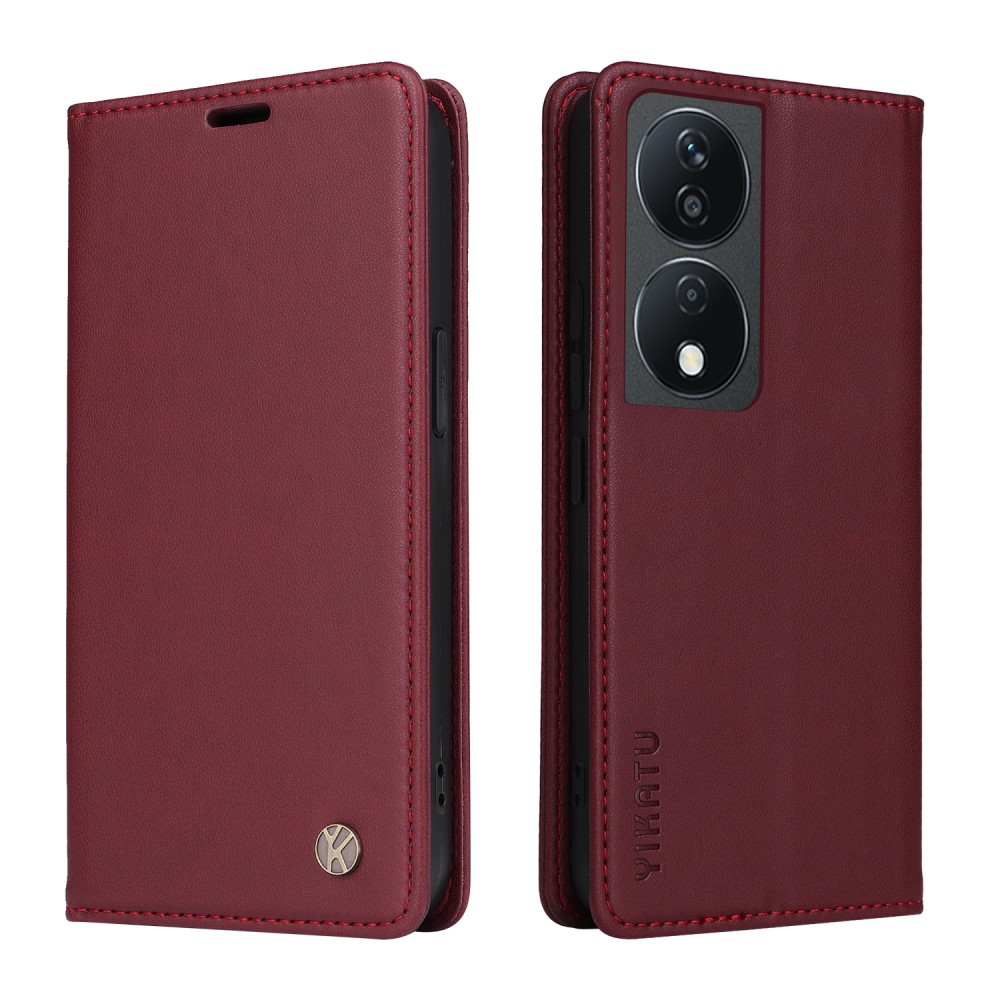 Θήκη Honor 90 Smart 5G YIKATU Folio Series με βάση στήριξης, υποδοχή καρτών και μαγνητικό κούμπωμα Flip Wallet από συνθετικό δέρμα και TPU κόκκινο σκούρο