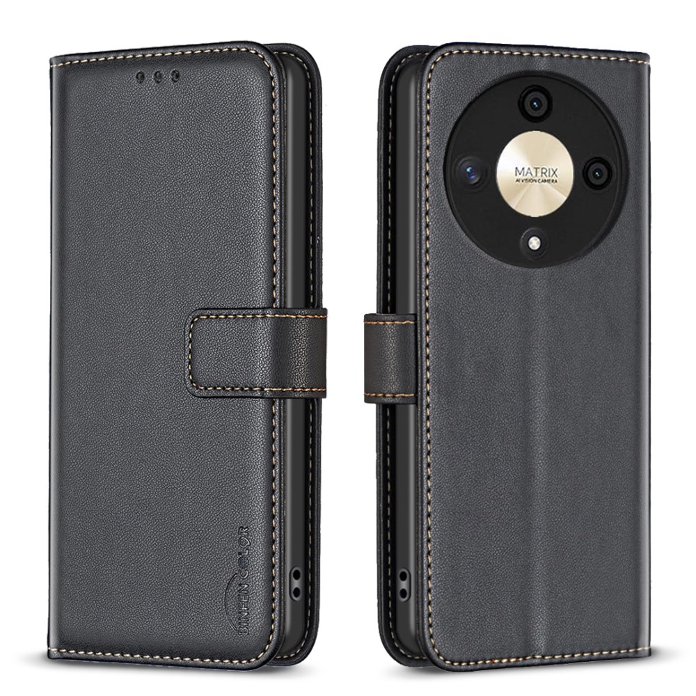 Θήκη Honor Magic6 Lite 5G BINFEN COLOR Leather Wallet Series 12 με βάση στήριξης, υποδοχές καρτών και μαγνητικό κούμπωμα – μαύρο