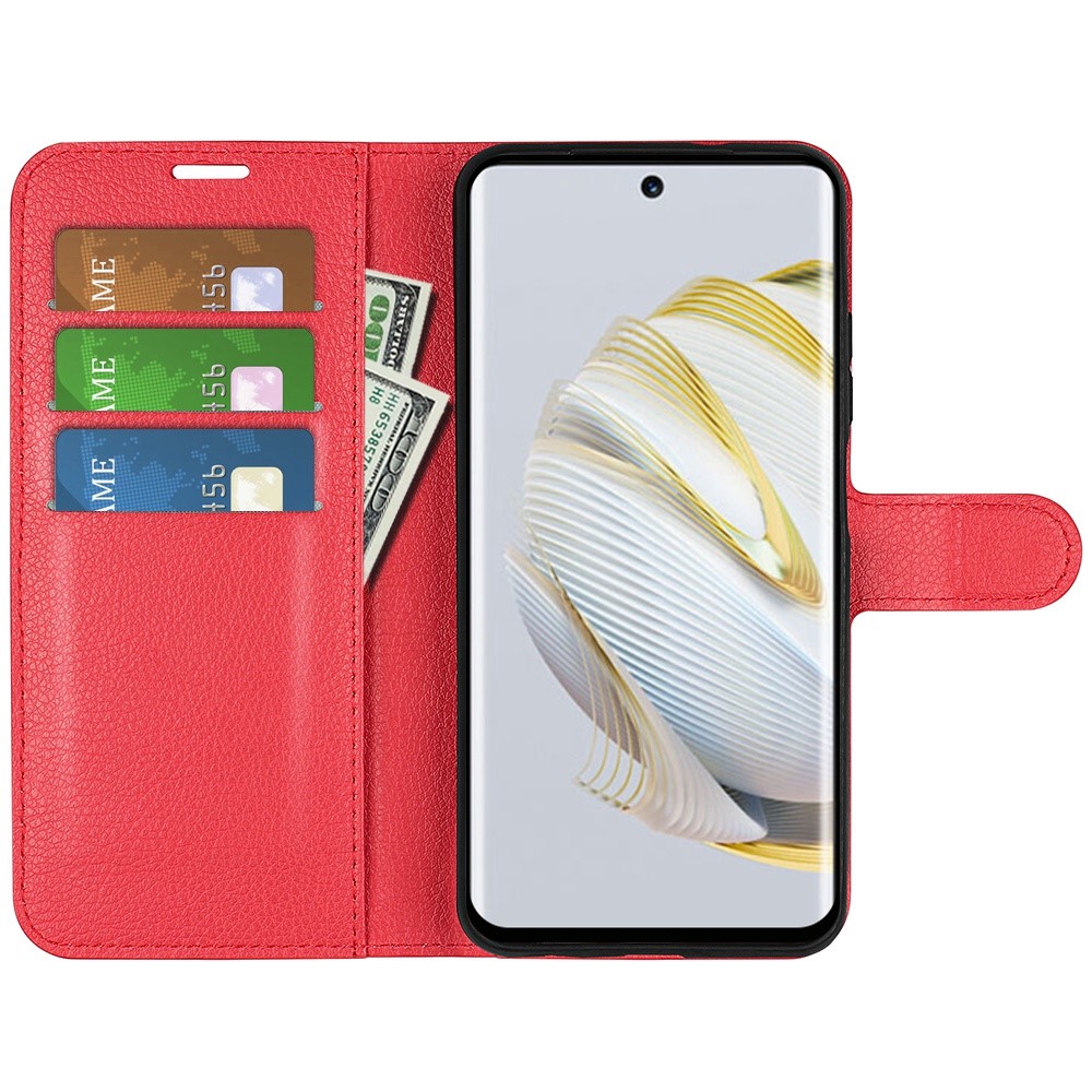 Θήκη Huawei Nova 10 Pro OEM Litchi Skin Leather με βάση στήριξης, υποδοχές καρτών και μαγνητικό κούμπωμα κόκκινο