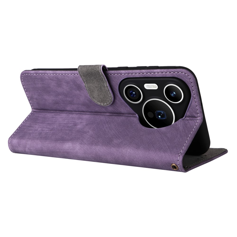 Θήκη Huawei Pura 70 Mad Mask RFID Blocking V2 Προστασία Ασύρματης Ανάγνωσης Καρτών Leather με βάση στήριξης, υποδοχές καρτών και μαγνητικό κούμπωμα μωβ