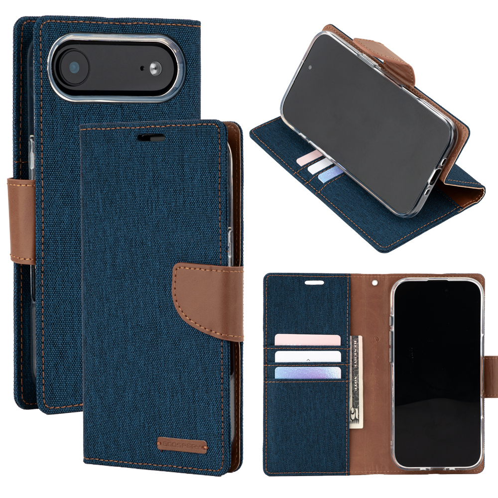 Θήκη Mercury Goospery® Canvas Diary book με βάση στήριξης, υποδοχές καρτών και μαγνητικό κούμπωμα για iPhone Air – μπλε/ καφέ