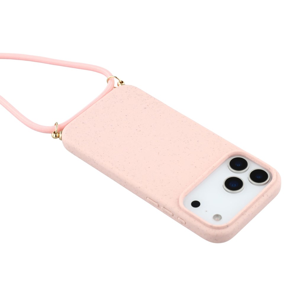 Θήκη iPhone 17 Pro – OEM – Πλάτη από Βιοδιασπώμενο Σιτάρι με TPU – Ροζ – Λουράκι