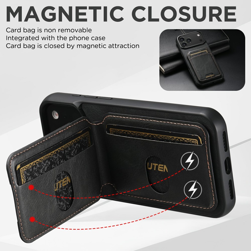 Θήκη iPhone 17 Pro Max – SUTENI H02 – Πλάτη από Συνθετικό Δέρμα (PU) με TPU – Μαύρο – Wallet/Stand