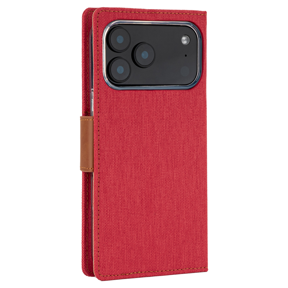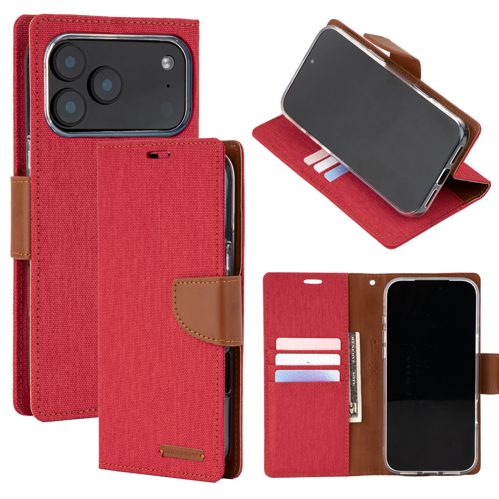 Θήκη Mercury Goospery® Canvas Diary book με βάση στήριξης, υποδοχές καρτών και μαγνητικό κούμπωμα για iPhone 17 Pro Max – κόκκινο/ καφέ