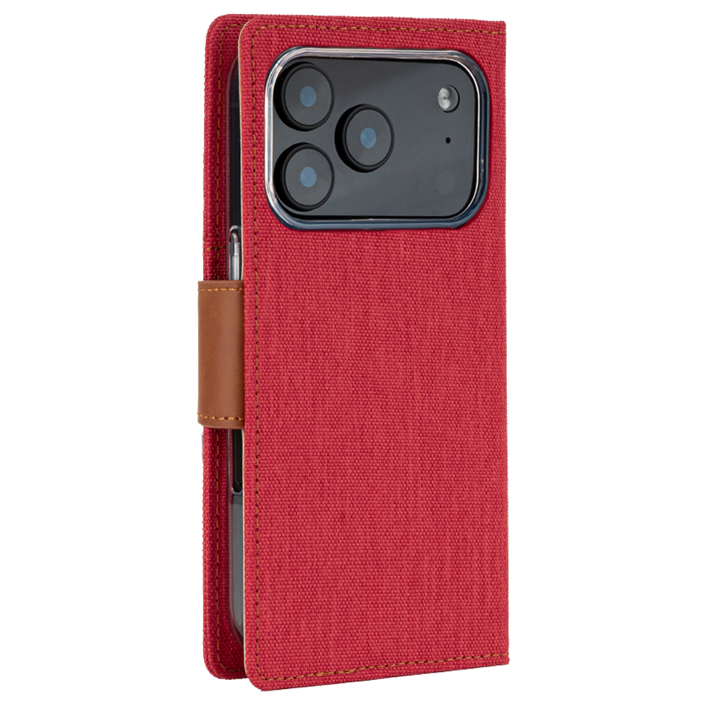 Θήκη Mercury Goospery® Canvas Diary book με βάση στήριξης, υποδοχές καρτών και μαγνητικό κούμπωμα για iPhone 17 Pro – κόκκινο/ καφέ