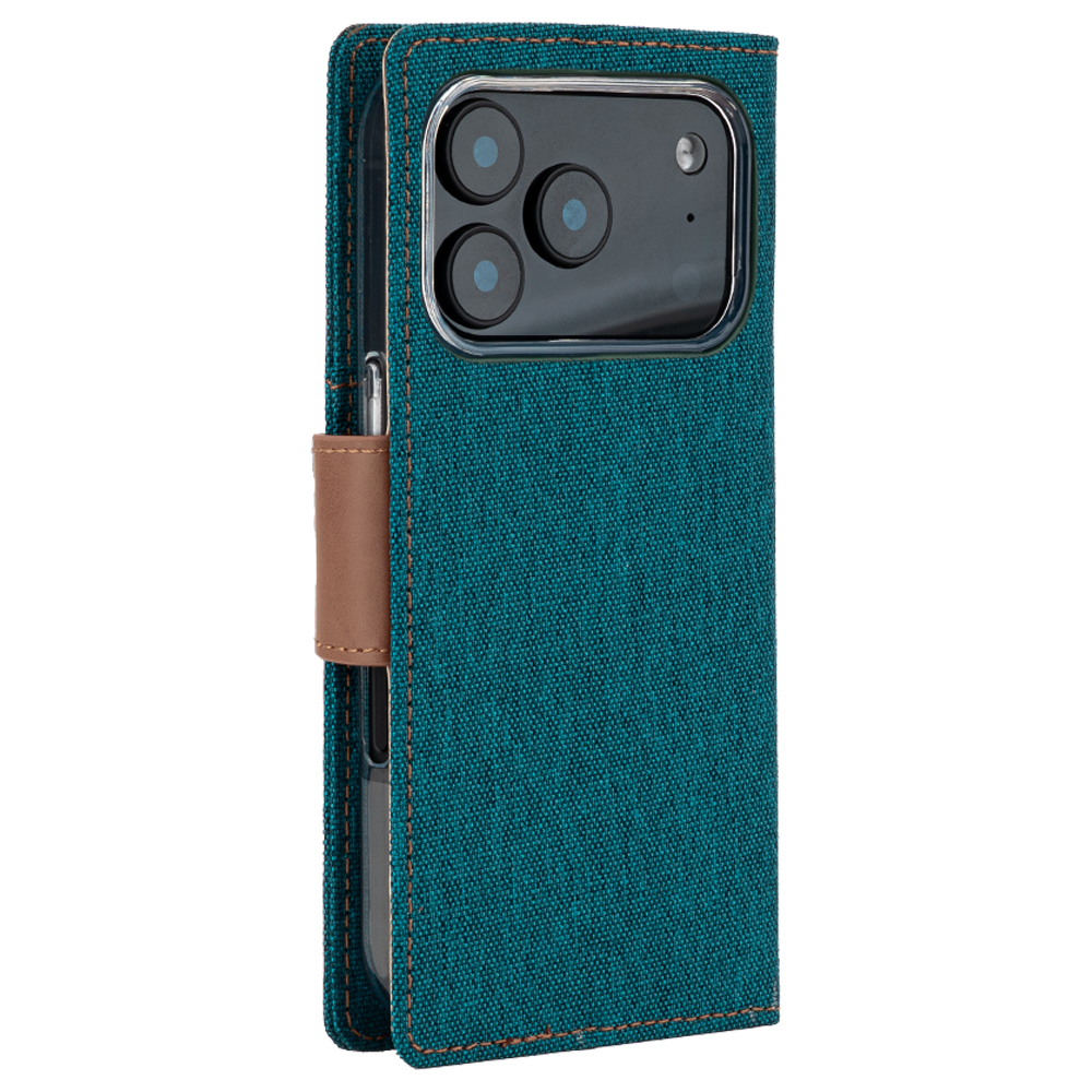 Θήκη Mercury Goospery® Canvas Diary book με βάση στήριξης, υποδοχές καρτών και μαγνητικό κούμπωμα για iPhone 17 Pro – πράσινο/ καφέ