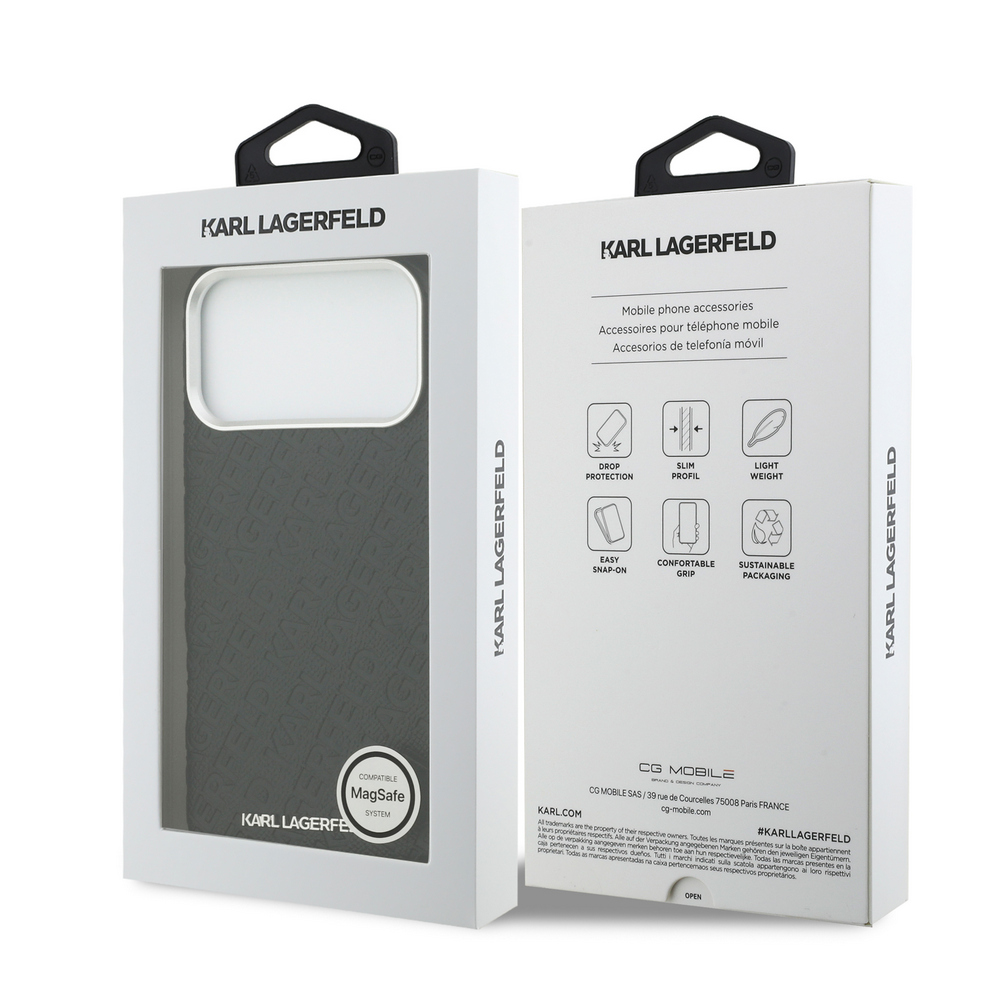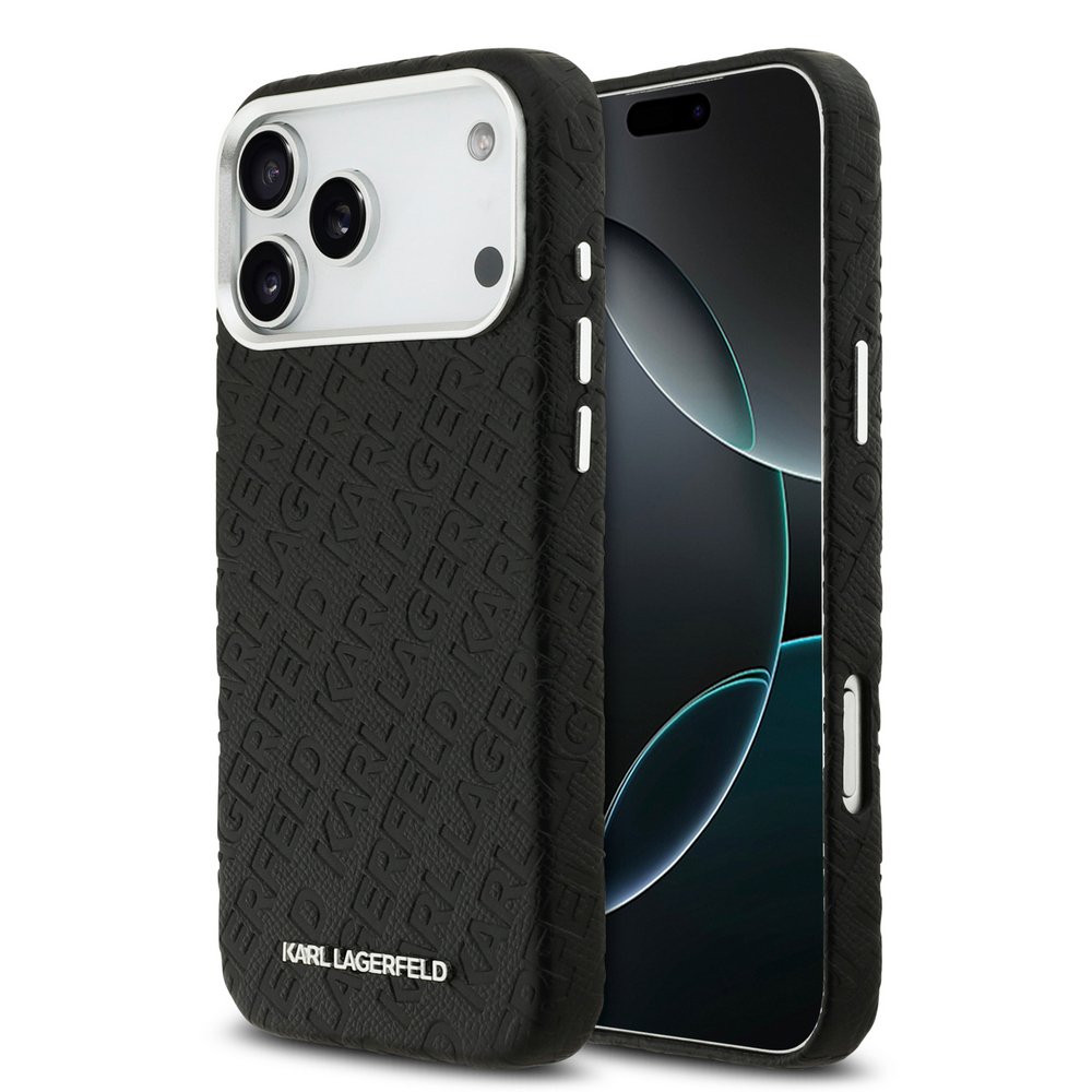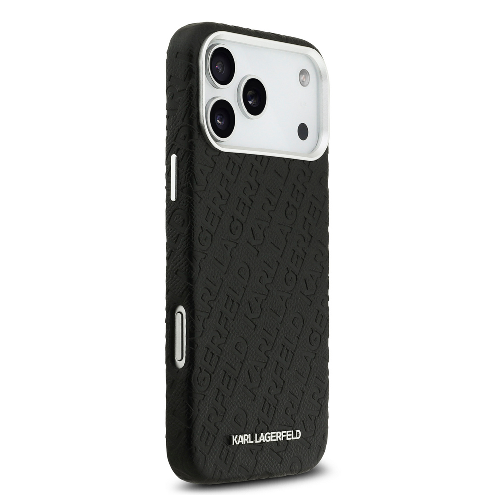 Θήκη Karl Lagerfeld Magsafe με ανάγλυφο σχέδιο και logo επιγραφή Karl Lagerfeld για iPhone 17 Pro μαύρο
