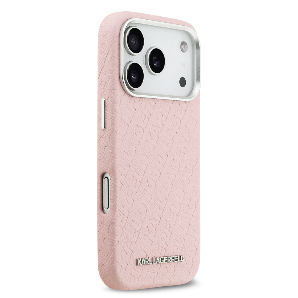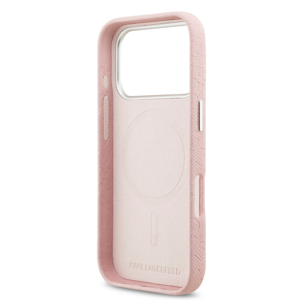 Θήκη Karl Lagerfeld Magsafe με ανάγλυφο σχέδιο και logo επιγραφή Karl Lagerfeld για iPhone 17 Pro ροζ