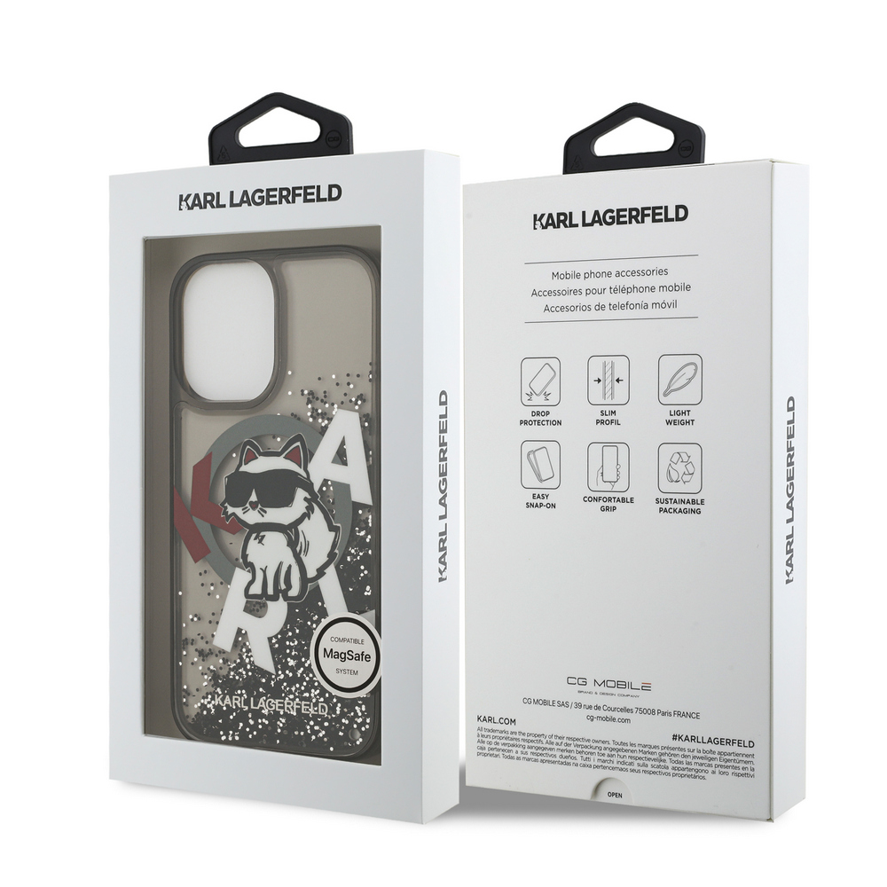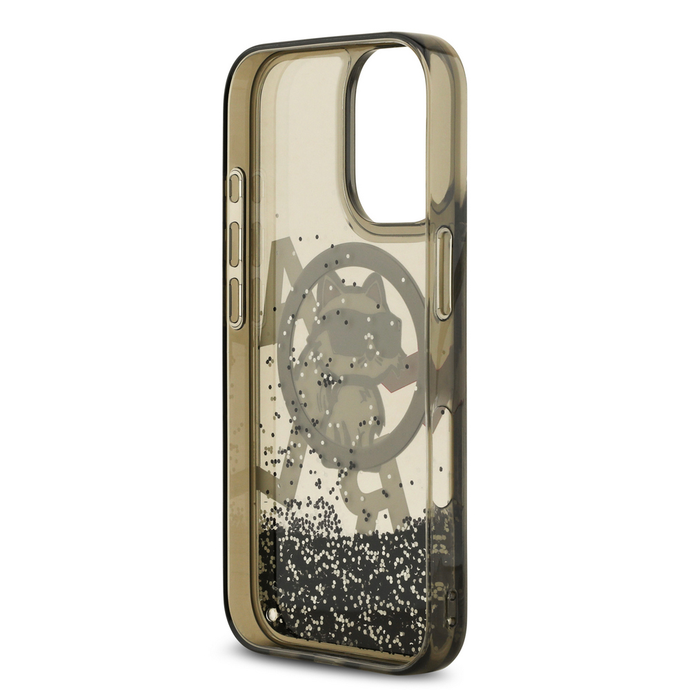 Θήκη Karl Lagerfeld Magsafe με liquid glitter & Choupette logο για iPhone 17 μαύρο