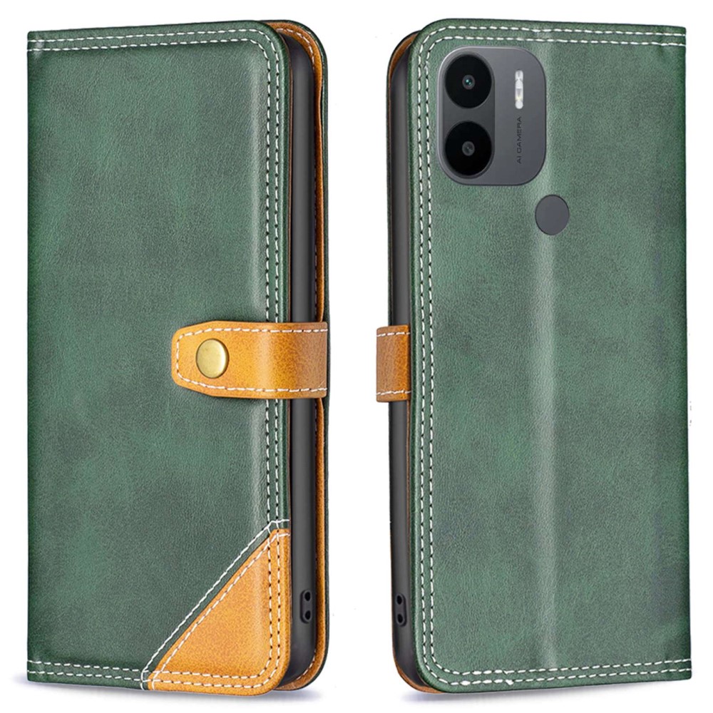 Θήκη Xiaomi Redmi A1+ BINFEN COLOR Leather Wallet Double Stitching Lines με βάση στήριξης, υποδοχές καρτών και μαγνητικό κούμπωμα πράσινο