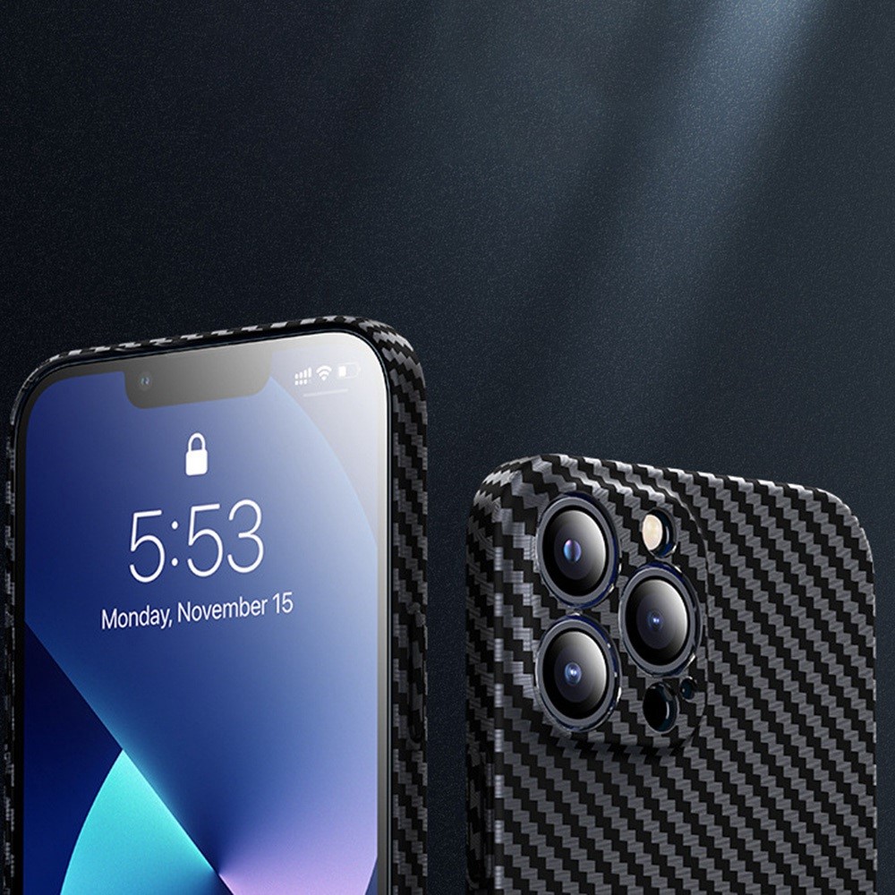 Θήκη iPhone 14 Mad Mask με υφή Carbon Fiber Ultra Slim με πλάτη αντικραδασμική από σκληρό πλαστικό μαύρο / ασημί