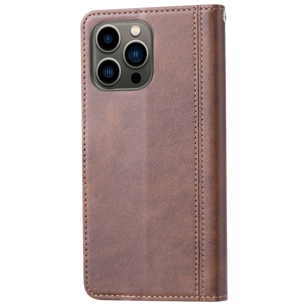 Θήκη iPhone 14 Pro Mad Mask Leather Wallet Business Golden Clasp με βάση στήριξης, υποδοχές καρτών και μαγνητικό κούμπωμα καφέ